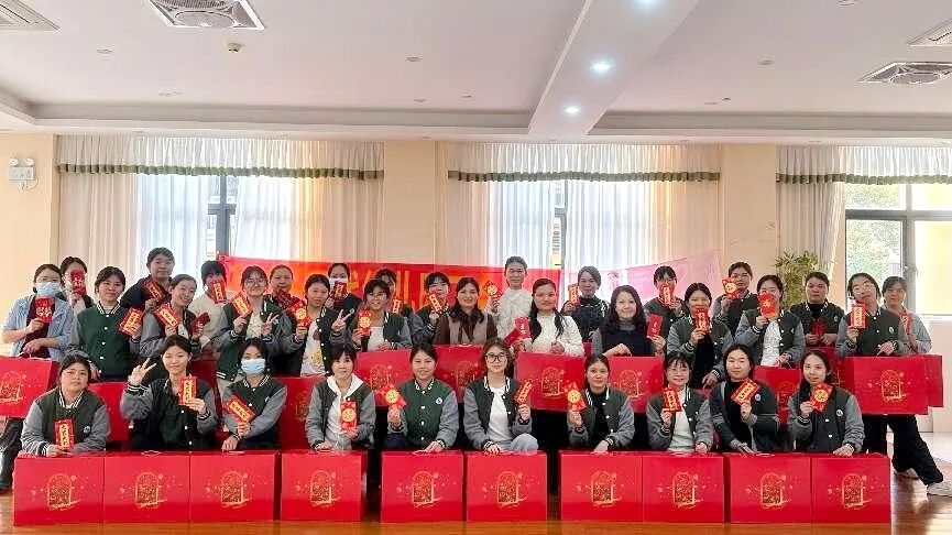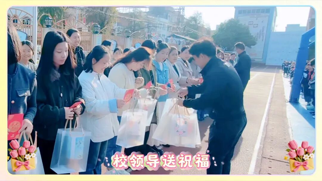 沙田腾辉学校全体师生齐聚操场,隆重举行“春风暖巾帼,芳华耀腾辉”主题活动,校领导为全体女教职工送上节日礼包与诚挚祝福。