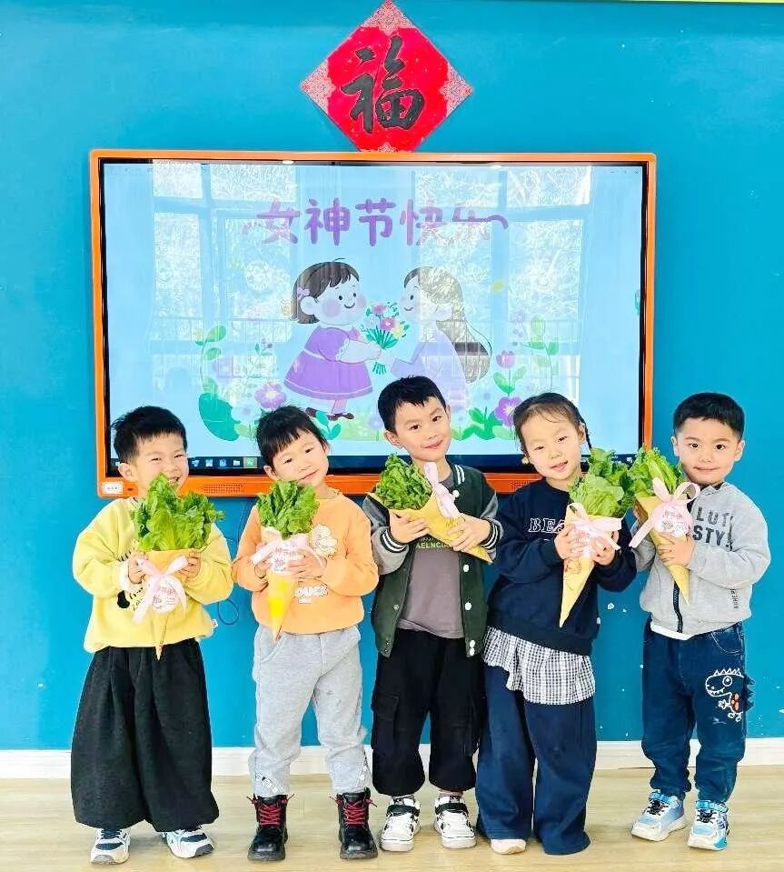 沙田蓓恩斯幼儿园孩子们走出校园,亲手选购生菜,精心制作成 “生菜花”,用稚嫩的心意向妈妈们表达爱与感恩;幼儿园工会为全体女教职工送上暖心礼品,致敬每一位在岗位上发光的 “她”。