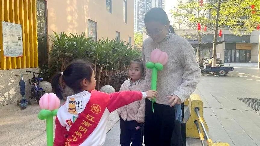 沙田江南明珠幼儿园开展“献花送祝福”活动。孩子们亲手将鲜花送给老师、妈妈、奶奶等身边的女性长辈,用小小的花朵传递感恩与爱意。