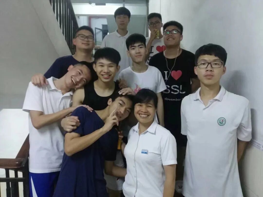 十余载朝夕相伴,她的付出换来了学生的真心认可。曾经调皮的学生渐渐都能理解她的用心,如今的她,每天期盼着学生归来,学生的冷暖安危都牵动着她的心。这份跨越身份的关怀,化作了最真挚的师生情谊。每年寒暑假与校庆,都有毕业学生返校看望她;毕业离校时,学生们紧紧相拥不舍离去;特别是17届的那些同学,因疫情无法返校,也特意发来消息叮嘱她保重身体……一声声亲切的“芬姐”,是对她工作最好的肯定,也是最动人的育人回响。她未曾执鞭讲台,却以体温登记表记录成长节律,以巡楼脚步守护心理防线。
