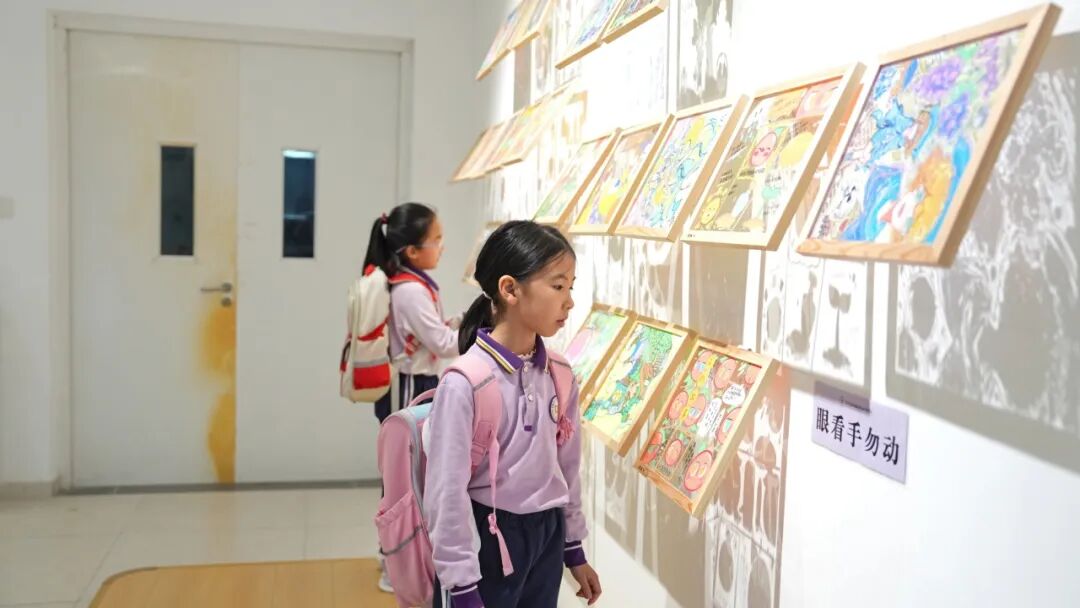 以艺术创造板块为例,学校结合艺术节主题活动,将学生创作成果自然融入接送空间,让孩子们在日常出入中看见自己的作品、欣赏同伴的创意,在耳濡目染中接受美育熏陶。
