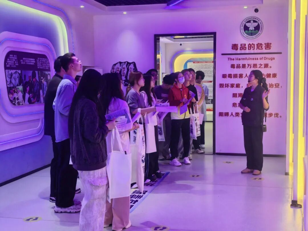 活动现场,在基地讲解员的引导与讲解下,学生们通过观看视频案例、解读图文展板、观察仿真毒品模型等形式,全面了解禁毒斗争历程,系统掌握毒品的伪装形式与隐蔽特性。参观中,学生们认真聆听讲解、驻足仔细观看、积极互动提问,在沉浸式体验中接受了深刻的禁毒思想洗礼。