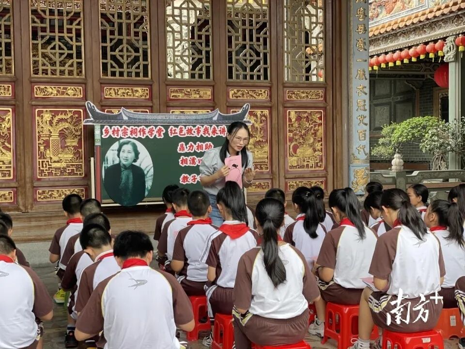 长安镇乌沙小学师生在乌沙村李氏宗祠上思政课